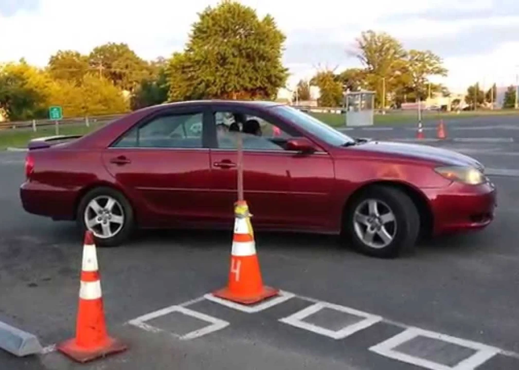 She backed in ok but jumped the curb after scraping the sidewall. Several more sessions proved fruitless and, the next thing we knew, the day of the test had arrived.