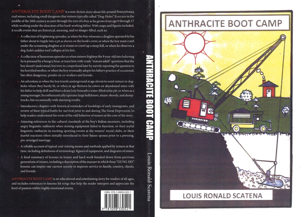 Louis Ronald Scatena is the author of "ANTHRACITE BOOT CAMP", and it's a true story about his childhood working under the direction of his hard-working Father, Peter (born ‘Piereno’) Scatena at Peter’s coal mines in Pennsylvania, U.S.A. from 1951 to 1959, when Louis was between the ages of 9 and 17.