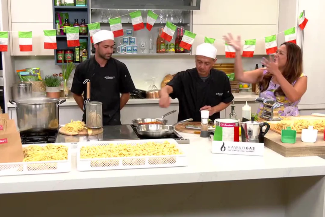 Camuffo, who comes from a small town near Venice, and Chef Nathan Sakata joined HNN’s Sunrise to talk about the concept, showcase their different pastas and demonstrate how they create tagliatelle from scratch using a pasta maker with a crank handle.