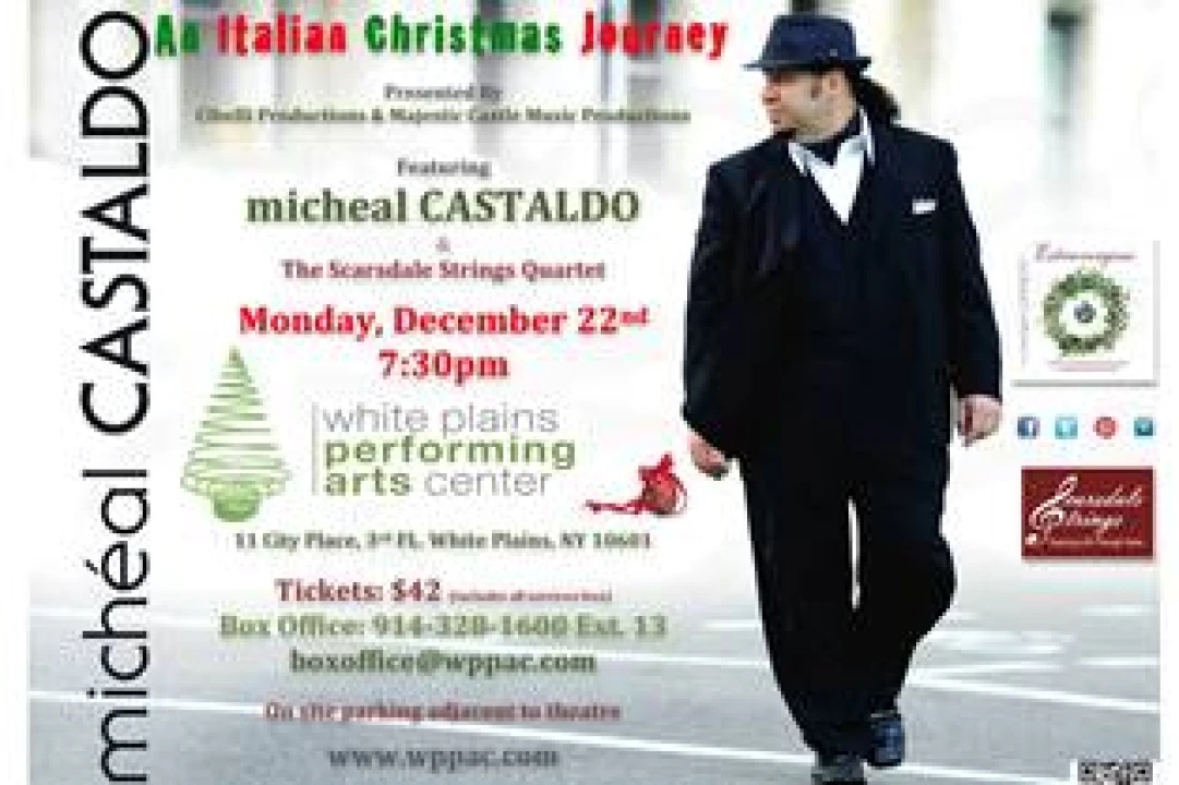 • Awardwinning Italian tenor Micheal Castaldo and The Scarsdale Strings to perform “An Italian Christmas Journey” at the White Plains Performing Arts Center, White Plains, NY on Monday, Dec 22nd
