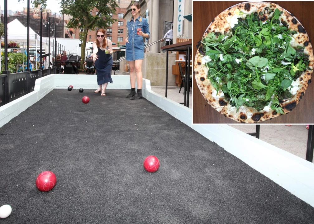You don’t have to be a whiz at bocce, the Italian lawn game, to enjoy Bocce USQ, the new pizza-driven, indoor/outdoor cafe that’s taken over the Union Square Pavilion. While a few customers toss balls in a tiny gravel court, many more happily wolf down crowd-pleasing pizza ($16 to $20) and share plates ($12 to $21).