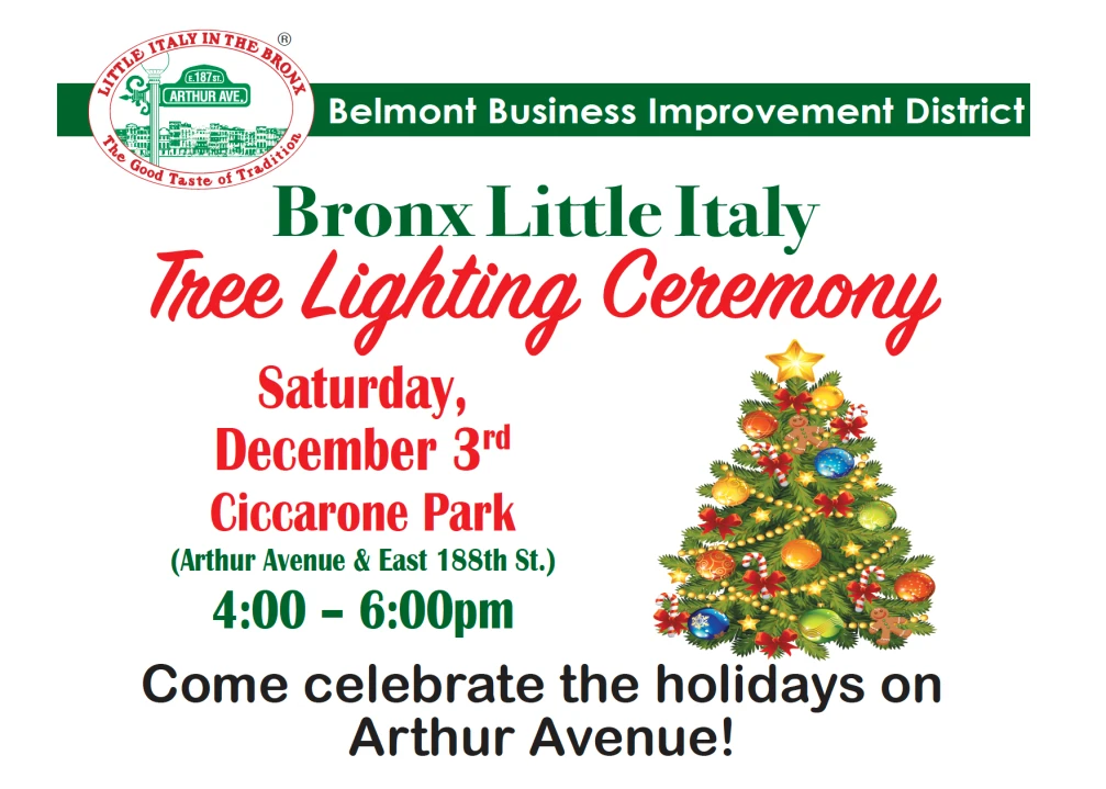 The Tree Lighting will be the start of just some of the neighborhood’s iconic holiday offerings including the Bronx Zoo Holiday Lights, the New York Botanical Garden Holiday Train Show®, and holiday shopping for gourmet goods as well as fine dining in Bronx Little Italy.