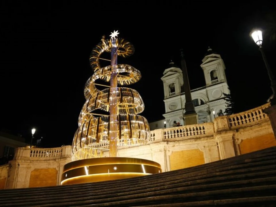Luxury jeweller Bulgari has brought festive cheer to Rome's Spanish Steps with a futuristic Christmas tree whose design is inspired by the company's iconic snake symbol. The gold-coloured installation, made of plexiglass, brass and metal, is topped with an eight-pointed star and illuminated with a hi-tech, energy-efficient lighting system.