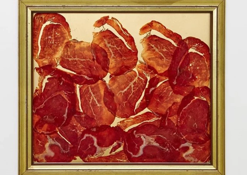Jim Dessicino is pleased to present, "Butchered and Cured" a exhibition of new artworks at Little Water Distillery in Atlantic City, NJ. Opening March 29th, 2018. With his new exhibition, Butchered and Cured, Dessicino tackles the iconic Italian tradition of curing meats. He seals them in gilt frames under resin in a gesture that is simultaneously reverential and blasphemous. Uniting all of Dessicino’s artwork is an examination of the traditions of Western Civilization with an emphasis on his ancestral homeland, Italy. He synthesizes old world traditions with the casino culture of his hometown.