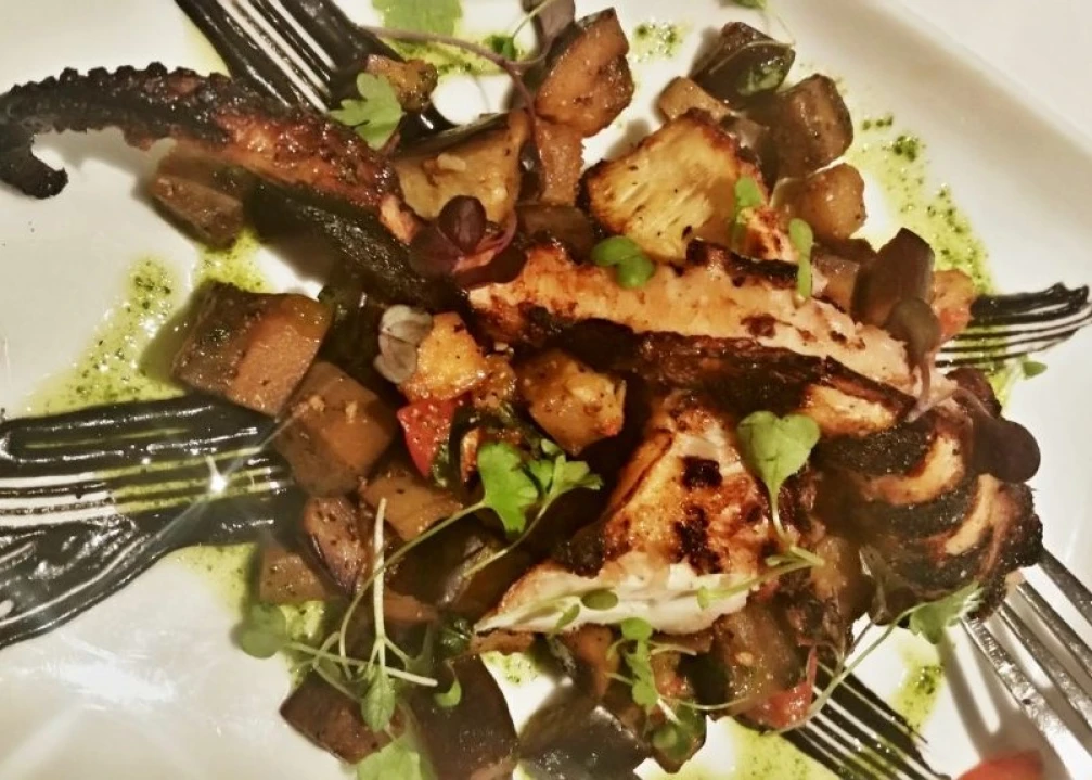 There was something about her sense of caring that made me feel she might be related to the owner, Kosmas “Tommie” Koukoulis. Koukoulis is also the owner of Uncle’s Hawaiian Grindz in Harford County. Cafe Mezzanotte recently went through six weeks of renovations, opening up spaces, new furniture, artwork and interior décor. Large photographs of scenes from Italy and farms overlooked tables in multiple dining rooms. The farm theme in the photographs supports the restaurant’s strong commitment to buying from local farms, seasonally and wherever possible eliminating supplies that are GMO.