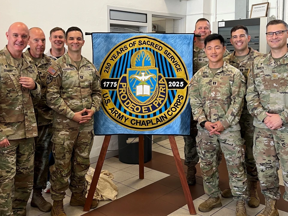 Battlefields that once had muskets and bayonets now have AI and drones, but one thing has not changed – the need for Soldiers to practice their faith. For 250 years, U.S. Army chaplains have been there for the troops, a fact discussed July 29 during a lunchtime banquet held at U.S. Army Garrison Italy’s chapel on Caserma Ederle.