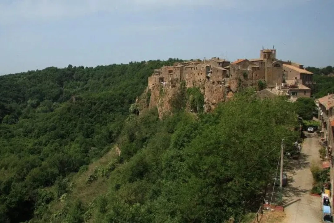 Whether you get to Calcata, Italy via a bus from Rome’s Saxa Rubra bus station or you have a car of your own, when you come around the bend in the road that snakes its way through the hills towards the silhouette of this medieval hill town, prepare to feel a sense of awe. The village, sitting atop a large mound of volcanic tufo stone 450 feet up and surrounded by a verdant valley, is one of the most bewitching in Italy.