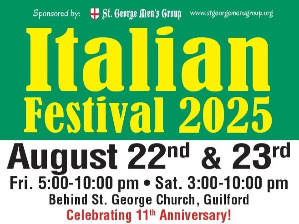 That's why St. George Men's Group Vice President Jim Turcio is inviting folks from all points to come out and enjoy one of the area's only Italian Festivals, while helping to raise money to support Guilford Meals on Wheels, this year's event beneficiary. The festival is the St. George Men's Club's largest annual fundraiser.