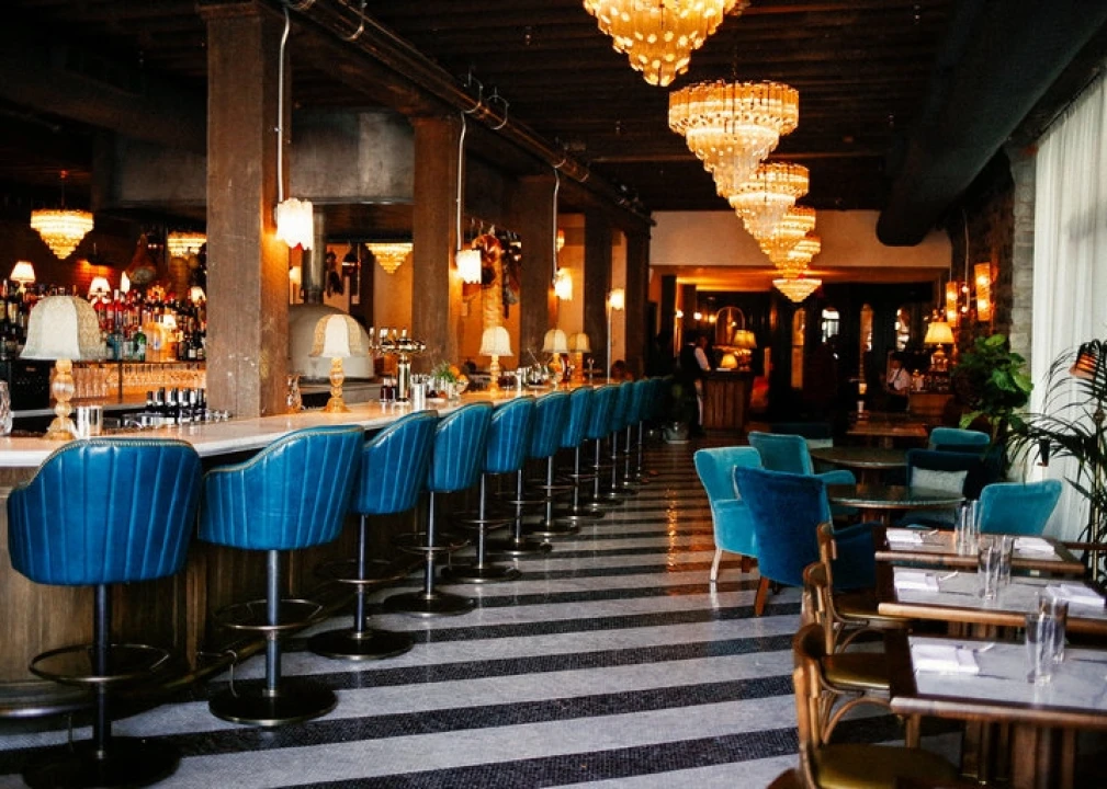 “Brooklyn has all that and lots of people who live there and visit,” he said. It’s a spacious, elegant restaurant with a brick-walled main dining room, arched windows and starched linens. The barroom, paved with black-and-white tile, has a generous central counter and gleaming chandeliers. A large terrace abuts the waterfront with a Manhattan vista.