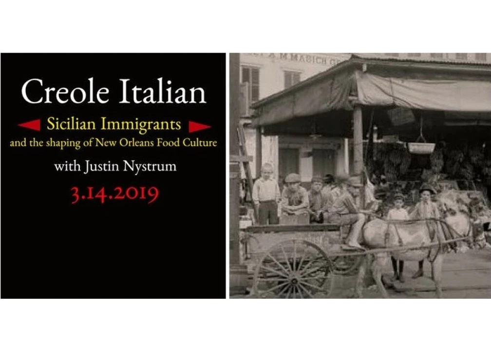 Thursday, March 21, 2019. 6:30 PM – 8:00 PM CDT. American Italian Cultural Center, 537 S. Peters St., New Orleans, LA 70130 In this talk, Dr. Justin Nystrom of Loyola University New Orleans will share some of the bigger surprises that came out of the research for his recent book, Creole Italian. This work documents the important role that Sicilian immigrants played in making New Orleans into one of the world's great food cities.