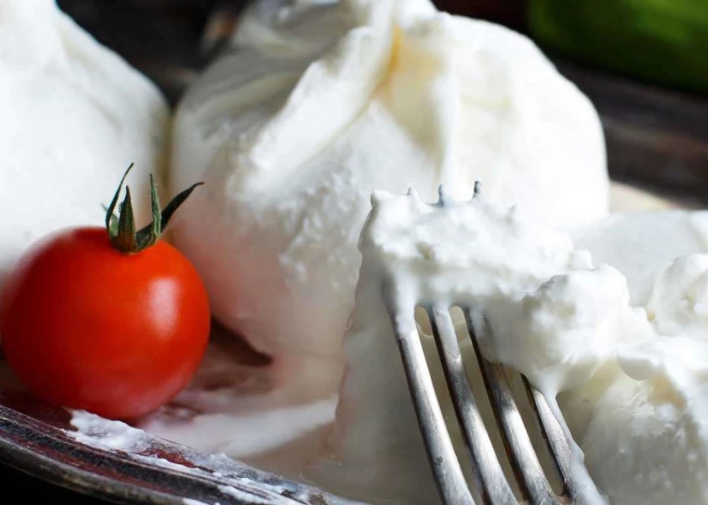 Burrata, which is still made by hand, consists in a casing of kneaded curd cheese and a filling of creammixed with little pieces of mozzarella called straccetti. This soft delicacy, sweet yet lightly tangy at the same time, must be consumed fresh. In Latium, burrata di latte di bufala is produced, but in limited quantities; Campania is known for burrini, small pockets of kneaded curd cheese filled with fresh butter.