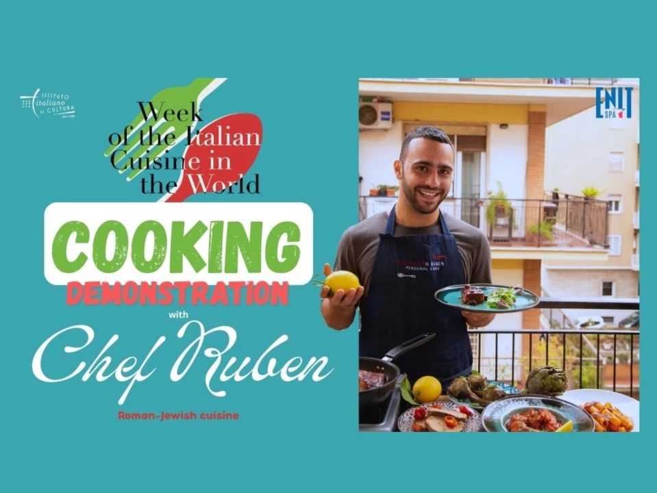 When: November 18, 2025 at 6:00 pm - Where: ICI-NY 686 Park Avenue, NY - What: Chef Ruben At the Italian Cultural Institute in New York With a cooking demonstration on the occasion of the Week of Italian Cuisine in the World
