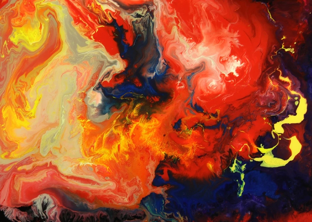 About the artist: Dick Marconi (b. 1934) is an American artist whose fascination with color began at the age of twelve when an accident left him blind and partially deaf in one ear. Dick gradually regained vision in one eye, first discerning only shades of black, white, and gray. When he began to see again, colors were more vibrant, and saturated than he recalled. Using his artistic passion for color, and his knowledge of chemistry, Marconi pioneered a technique that melds a variety of paints and solvents to make colors move, fuse, flow, and retract as if they were placed on the canvas by a magical force.