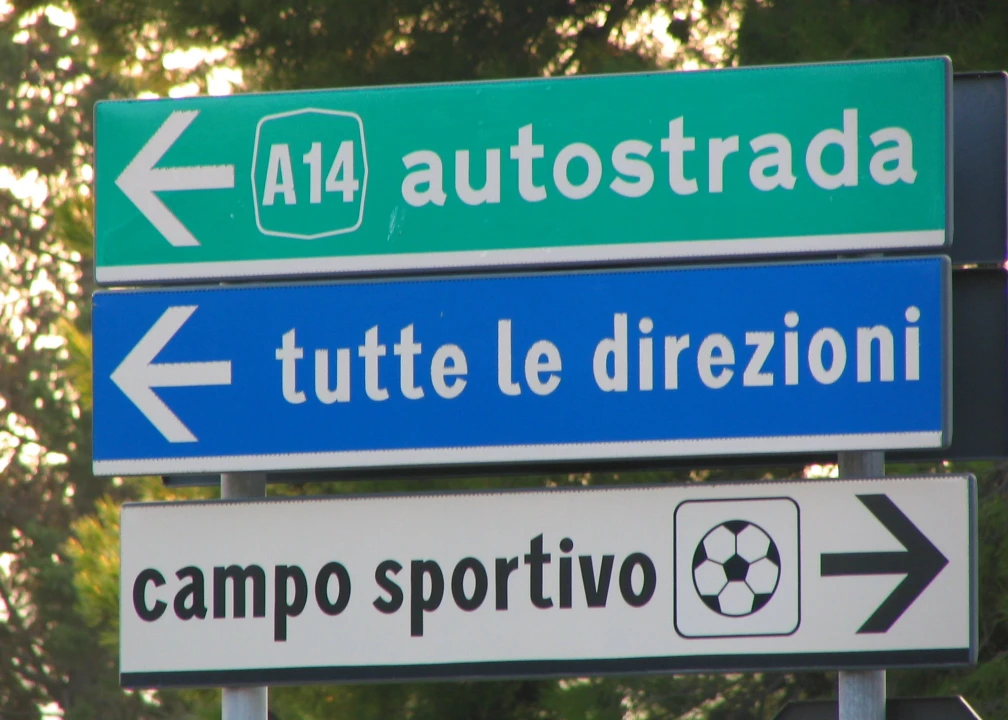 When you come to a crossroads in Italy you may become disoriented by the multitude of signs. It may be hard to see the sign you are looking for while you are driving, especially if you see ten or more other signs. Italians have tried to make it easier by using different colors for their signage system: