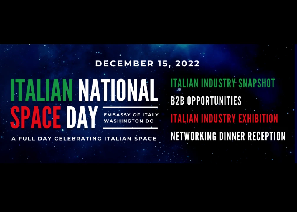 The Embassy of Italy in Washington, D.C. in collaboration with the Italian Trade Agency and the Italian Space Agency, cordially welcomes space industry players and shareholders to attend a full day of celebrating Italy’s “National Space Day” and exploring new opportunities. The activities are planned for Thursday, December 15th.