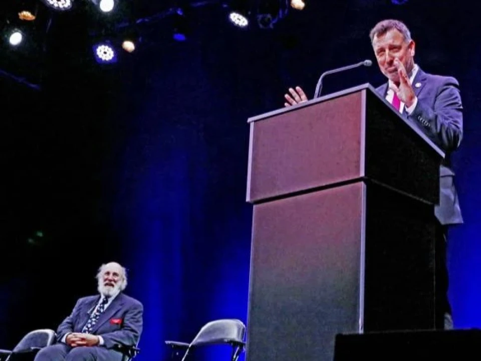 As part of the Dante Alighieri Society of Westerly’s 50th-anniversary celebrations, the organization hosted a free public talk featuring Arnaldo Minuti – Consul General of Italy in Boston – at the United Theatre on Friday, November 7, 2025. Society president Lou Toscano and event chair Edward Morrone served as co-masters of ceremony.