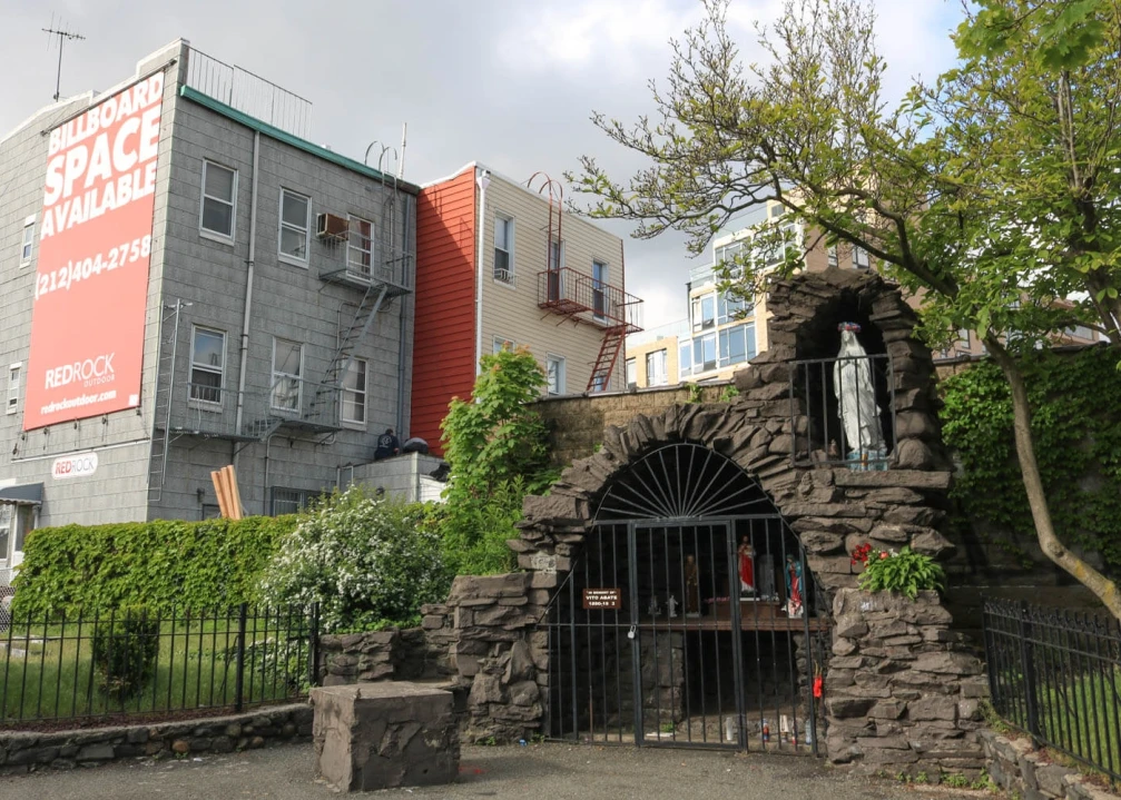 At the intersection of Woodpoint Road and Conseylea Street in Williamsburg sits a 20th century curiosity built on a tiny plot of ground with a centuries-old significance in the history of Brooklyn. The Vito Abate grotto at 219 Woodpoint Road was built in the late 1930s as a religious shrine associated with St. Francis of Paola Church, located across the street. While the grotto isn’t particularly old, it sits at the crossroads of one of the earliest settlements in Brooklyn, Het Dorp, dating from the 1640s.