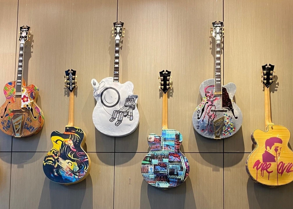 Art curator DK Johnston has combined two artistic forms in a group show featuring 14 exquisitely crafted D'Angelico Guitars -- each reimagined by a different artist. Each of the artists will be participating in the artist-in-residence at the Canopy, or is represented in the hotel's permanent collection.