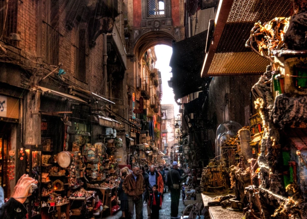 The center of Naples is marked with many narrow pedestrian roads, but Via San Gregorio Armeno, also known as Via dei Presepi (Presepi Street), stands out. The street is completely full of shops dedicated to the traditional Neapolitan presepio, the Christian nativity scene. Almost every figure and decoration found here is handmade by local nativity scene artisans.