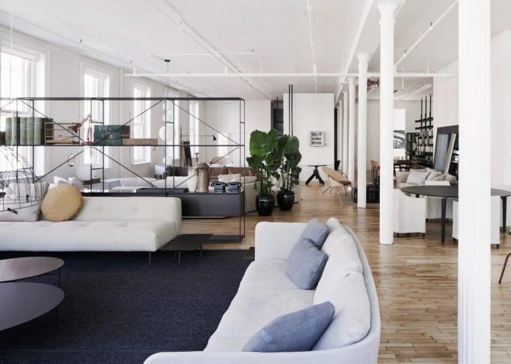Italian furniture brand DePadova has opened its first US showroom in New York City, where products are presented alongside items from its parent company Boffi and sister label MA/U Studio. The DePadova store spans 4,000 square feet (371 square metres) across the third floor of a historic building, which boasts high ceilings and large windows, on a corner plot on Greene Street in Soho.