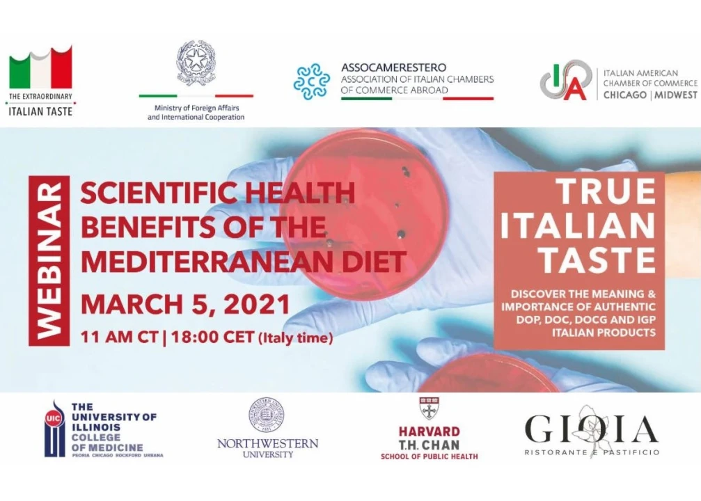 The Italian American Chamber of Commerce presents the new True Italian Taste Webinar “Scientific health benefits of the Mediterranean diet”, in collaboration with Assocamerestero and the Ministry of Foreign Affairs and International Cooperation. The event will analyze from a scientific point of view the benefits of the Mediterranean diet and the IGP and DOP products that are part of it.