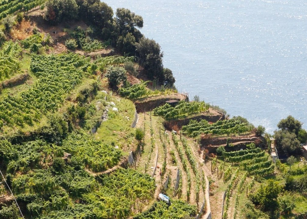 Vermentino and Pigato are the most common local vines, while Bianchetta, Genoese, Cimixià, and Lumassina are among the most interesting indigenous grapes. The wines produced in and around the Cinque Terre are excellent, with vertiginous terraced vineyards that were mentioned in the works of 14th-century poet Francesco Petrarca. One of the most particular wines made here is Sciacchetrà, a rare passito made from Bosco, Albarola, and Vermentino grapes.