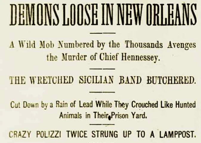 What is also pretty interesting to me is that throughout this period Italians are not just on the sidelines, they are not being passive in this: in 1896 they have a massive parade, a big meeting and then they're marching through the streets with draft horses and posters and chickens perched in cages demanding that they be allowed to vote, regardless of the voting rights laws that are passed in Louisiana. So I also find this an interesting story, because they are very much participating in this moment.