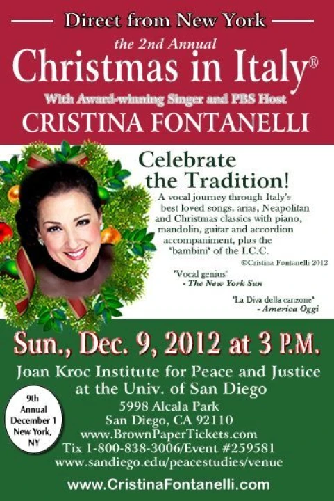 Now playing for nine Christmas seasons in New York, the magic of "Christmas in Italy" comes to the West Coast for the second time in 2012. Ms. Fontanelli will be accompanied by piano, mandolin, guitar and accordion in order to evoke the authentic Italian flavor of the music.