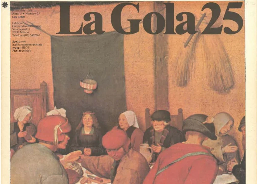 Italy's society of the 1980s can be narrated through its food imagery: an ideal source for telling this story is the magazine La Gola (The Gourmet or The Glutton give controversial though not complete translations of its title). This monthly periodical, founded in Milan in 1982, was released throughout ten years, a crucial time for political and social changes in Italy, associated with the development of food activism through the set up of the Slow Food movement. The magazine hosted scholarly controversies involving ideological and aesthetical debates with interdisciplinary approaches and with a definite call to activism.