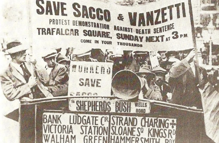 L'anarchismo è l'ideologia più radicale della sinistra: offre una critica molto severa dello stato, in particolare dello stato capitalista. Sacco e Vanzetti non erano anarchici quando lasciarono l'Italia. Lo sono diventati qui, in risposta all'ingiustizia e allo sfruttamento che hanno visto intorno a loro negli Stati Uniti. Quando arrivarono qui, trovarono i loro connazionali e le donne che vivevano e lavoravano in condizioni orribili, e questo li radicalizzò. Loro stessi venivano pagati pochissimo, con condizioni di lavoro veramente malsane e pericolose, e videro che il sistema politico non stava affrontando queste ingiustizie. Le persone che tentavano di combattere lo sfruttamento venivano imprigionate; coloro che cercavano di organizzare la difesa dei lavoratori erano fisicamente e verbalmente molestati e picchiati. La politica americana di quegli anni faceva molto poco per affrontare queste condizioni di sfruttamento. Il più importante socialista americano dell'epoca, Eugene Debs, criticò duramente il sistema e la guerra, e per questo fu mandato in prigione.