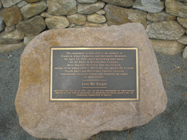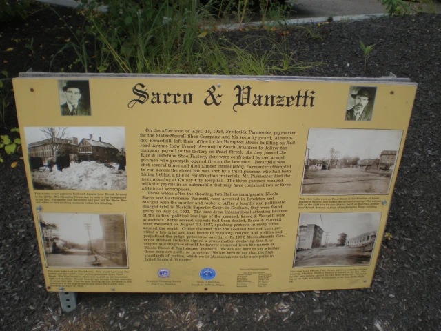 Allegedly, they robbed and murdered a paymaster and his guard at a shoe factory in South Braintree, Massachusetts, a little town just thirteen miles south of Boston. Their arrest happened during the first Red Scare - the diffusion of widespread fear of a potential rise of communism, anarchism, or radical leftism - in the United States. After World War I there was a real fear here in the US that what had happened in Russia – the Revolution – might happen here as well. Efforts had to be taken to make sure that it didn’t. The Red Scare started when a series of bombs were sent to government officials, including one in 1919 that was sent to the home of then-Attorney General, Alexander Mitchell Palmer. There was a glitch, however, and the bomb blew up the bomber himself. Evidence at the site that indicated the bombing was the work of Italian anarchists. So, the word went out, there were raids in various places, and Sacco and Vanzetti were swept up and arrested. They had done nothing wrong at the time of their arrest; they were in a streetcar in Brockton, Massachusetts, but they knew about the raids and when they were arrested they assumed it was for being radicals, anarchists. For that reason they didn’t protest their arrest. Unfortunately, their lack of protest was seen as proof by some that “they must be guilty!".