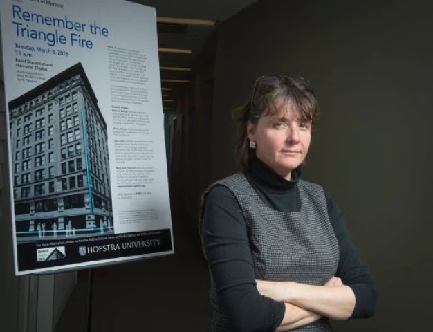 Il "Triangle Shirtwaist Factory Fire" fu un incendio che avvenne a New York nel quartiere di Manhattan del Greenwich Village nel 1911. 146 persone rimasero uccise quando un incendio divampò in una fabbrica in cui si producevano camicette e abiti per donne. Secondo la testimonianza di alcuni sopravvissuti, le porte antincendio dell'ambiente in cui le ragazze stavano lavorando erano state bloccate perché i proprietari della fabbrica volevano impedire alle ragazze di rubare. Lì lavoravano prevalentemente donne e quando il locale prese fuoco, oltre 60 di loro saltarono dalla finestra per sfuggire alle fiamme. Fu un momento orribile per New York City. Un terzo delle persone morte nel fuoco erano italiane: la più vecchia aveva 43 anni e la più giovane aveva solo 14 anni. Ora c'è un memoriale che le ricorda, in Italia. La "Triangle Fire Coalition" è stata fondata nel 2008 dall'artista Ruth Sergel. Ruth e gli altri membri della coalizione hanno aiutato ad organizzare la cerimonia per il centesimo anniversario della tragedia. Io sono diventata Presidente del gruppo in seguito. La coalizione mette insieme una varietà di persone: artisti, accademici, sindacalisti, avvocati, attivisti della comunità e altri. È una coalizione interetnica di italiani, ebrei e persone di tutti i tipi che mantengono viva la memoria sull'evento e anche sulle cose buone accadute in seguito ad esso: il movimento per i diritti dei lavoratori negli Stati Uniti ha guadagnato slancio, sono state approvate leggi per garantire la sicurezza sul lavoro e vietare il lavoro minorile. Qui negli Stati Uniti vediamo nella vita quotidiana gli effetti positivi della legislatura approvata in seguito a questa tragedia: vie di fuga obbligatorie, limiti massimi di occupazione di un locale, porte di apertura verso l'esterno. Il "Triangle Shirtwaist Factory Fire" fu certamente una tragedia che però ha anche portato a conseguenze veramente buone.