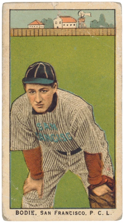 Ping Bodie (October 8, 1887 – December 17, 1961), born Francesco Stefano Pezzolo, was a center fielder in Major League Baseball who played for the Chicago White Sox (1911–1914), Philadelphia Athletics (1917) and New York Yankees (1919–1921). Bodie batted and threw right-handed. He was born in California and his baseball nickname came from "Ping" for the way the ball sounded when it came off his 52-ounce bat, and "Bodie" for a town in California where he once lived.