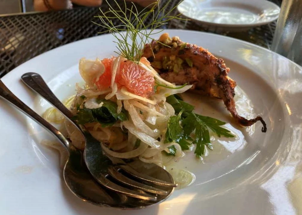 We’ve been starting with the grilled octopus when it’s on the menu, tender and served recently with a citrus salad, roasted asparagus topped with a fried egg and freshly grated cheese, or the simplicity of prosciutto and melon, a classic Italian pairing that we were recently reminded we should eat more often.