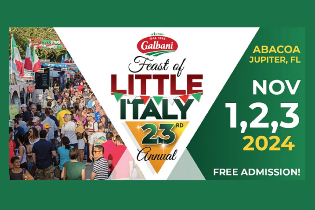 The Galbani Feast of Little Italy returns to Abacoa in Jupiter on November 1-3, 2024. The cultural festival, known for its Italian ambiance, national Italian American entertainers, and authentic food, will offer free admission. This year’s theme is celebrating Italian American Heritage and Culture.