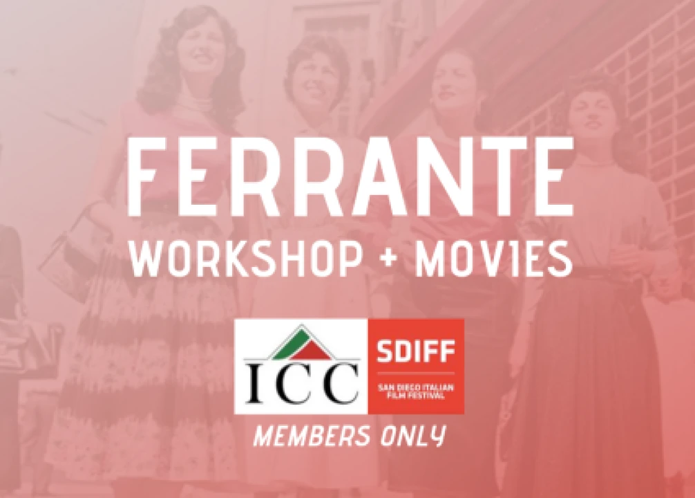 The ticket also includes entry to the Ferrante Night during SDIFFS 13th FeStivale on Thursday, October 17th at 7,30 pm at the Museum of Photographic Arts (MOPA). This double feature includes the screening of the documentary Ferrante Fever and of L'amore molesto. Please note the workshop will be taught in English, with references to the original texts. Tickets here. Member code: ferrante19.