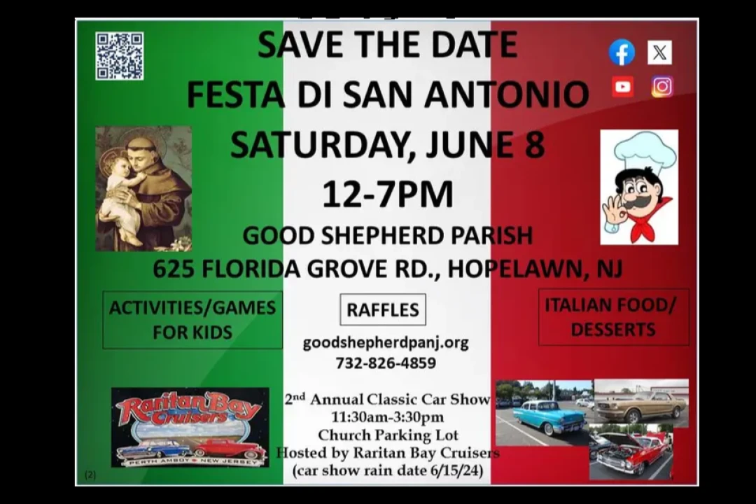 Good Shepherd Parish, 625 Florida Grove Rd., in the Hopelawn section of Woodbridge will once again be hosting the Festa di San Antonio on Saturday, June 8 from Noon to 7PM in Msgr. Gambino Hall.