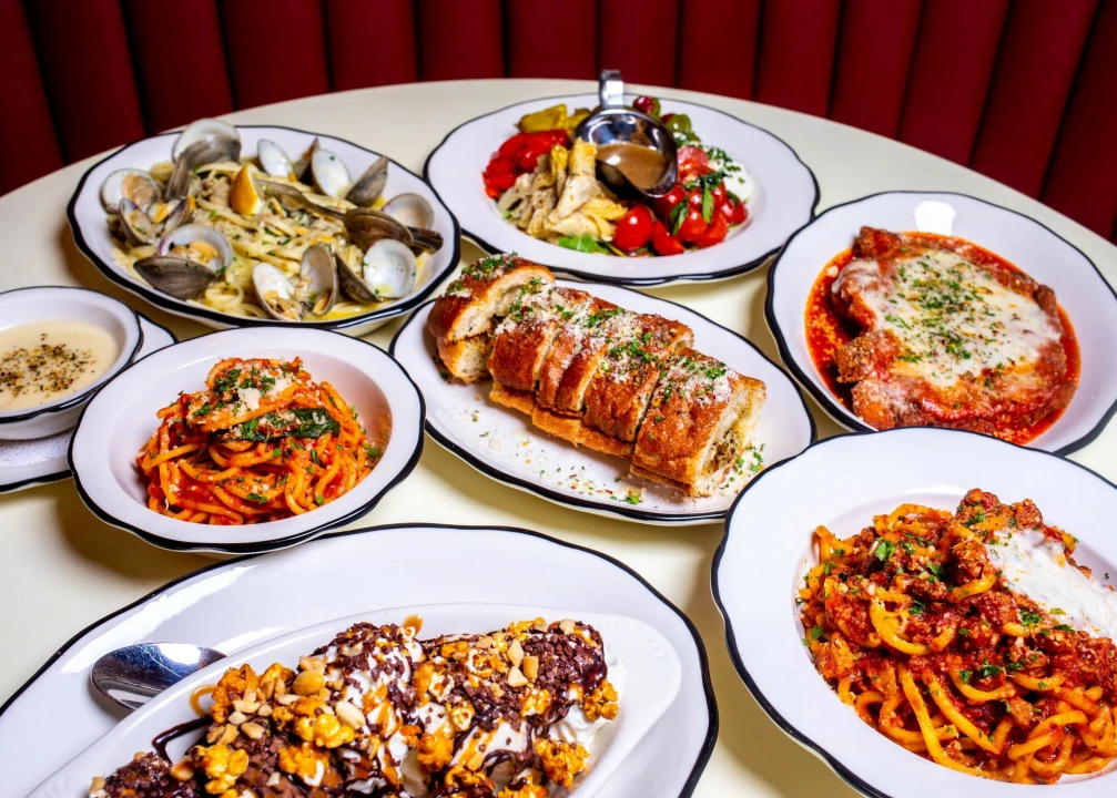 When you walk into Caruso’s Grocery, it feels like you’ve been there before – and that’s the point. The standalone restaurant at The Roost food hall on Capitol Hill is modeled after classic red sauce Italian joints, replete with red banquettes, black-and-white pictures of Italian icons hanging on the walls, and Sinatra pumping on the sound system. With 65 seats inside and another 20 on the patio, it feels cozy, comforting, and welcoming.