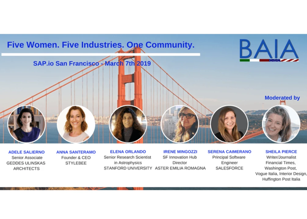 Thursday, March 7, 2019. 5:30 PM – 8:30 PM PST. Organized by BAIA. Location: SAP.io - 344 Brannan Street - San Francisco, CA 94107. March is Women's History Month and BAIA is excited to celebrate it with the community. This panel event will feature stories of Italian women in different industries, from Science to Entrepreneurship, from Tech and the Startup world to Design and Architecture.