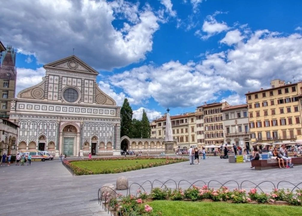 If Florence is your destination, it's more than likely that you will arrive at the station called Santa Maria Novella, or Firenze SMN for short. It is Florence's main station, built in the Modernist style in 1934, used by 59 million passengers per year, and named after the nearby enormous Dominican church begun in 1246. Normally areas near stations are rather seedy and to be avoided, but this is the exception. In this little area there are so many treasures that you could spend a whole day within a small radius.