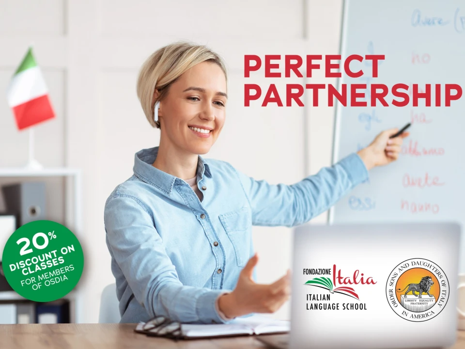 Fondazione Italia, a leading Italian Language school both in the classroom and online, has announced a partnership with Order Sons And Daughters Of Italy In America® (OSDIA). All members of OSDIA are eligible for a 20% discount on any group class offered by Fondazione Italia, which include beginning to advanced as well as conversational, vocabulary and Italian for travelers’ courses.