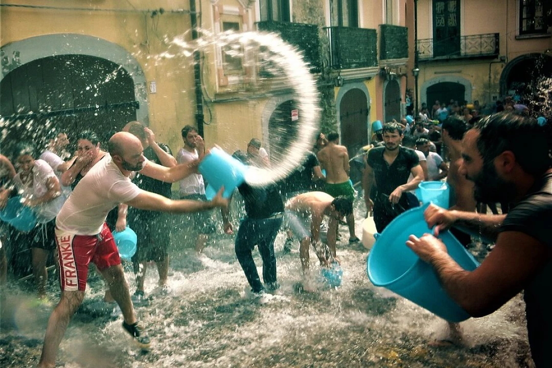 But every July and August, its stone-paved Corso Umberto I becomes something else entirely: a shallow waterway that runs through the centre of town, soaking everyone and everything in its path. Yes, you read that right! Every summer, its main streets are deliberately flooded with water from the nearby Tenza River, following a centuries-old practice known as ‘A Chiena, which began as a way to clean and cool the streets during the hottest months, but ended up becoming a distinctive local tradition, still carried out using the same basic diversion system designed some 400 years ago.