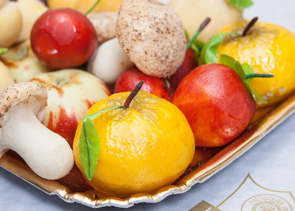 The Marzaban was a light wooden box with a lid that was used for various uses, such as hidden the mails or more frequently used to send cakes prepared with flour, almond paste, and other ingredients, which inherited the name, marzapane because of their shape. In Palermo the sisters of the convent annexed to the Church of Saint Mary of Admiral, or St Nicolò of the Greeks (known as the Martorana) prepared sweets.