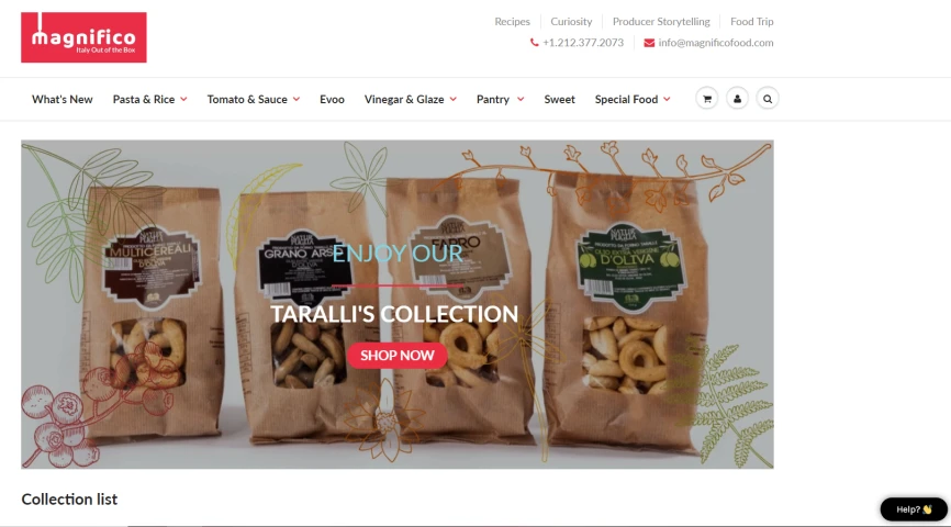 The distribution of Made in Italy food products in the American market has historically seen the use of various professionals, such as importers, distributors, brokers, agents, final retailers and/or large retailers. This long supply chain still makes our products too expensive and does not benefit the American consumers who find themselves paying dearly for this chain! Magnifico Food was created to allow even small producers of quality Italian food in compliance with the Food and Drug Administration to export their products to the U.S. at the best price for the American consumer. Magnifico Food directly imports the products it sells on the website without intermediary costs and delivers throughout the United States thanks to its warehouse located in New Jersey.