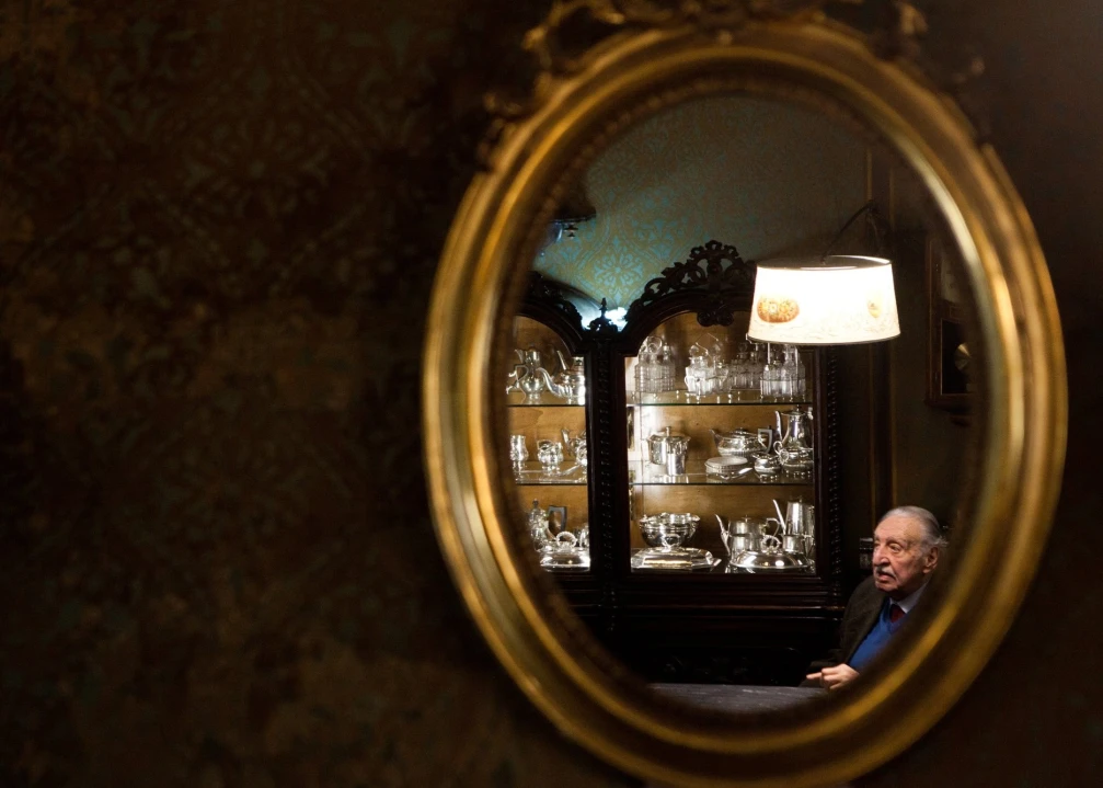 Hanging from its rib-vaulted ceilings, hand-painted in plaids and fleur-de-lis, crystal chandeliers illuminate a museum-worthy exhibition of antique jewels and silver tableware. But the precious pieces are all for sale.