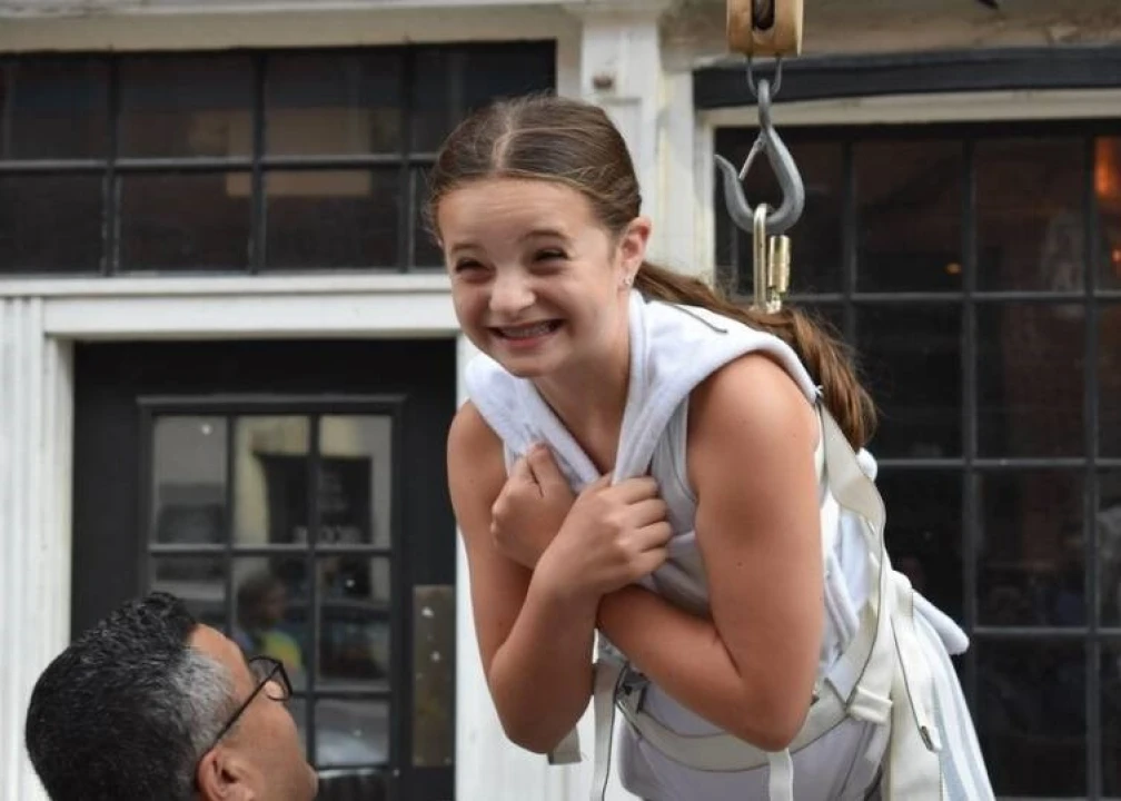 Let me explain. During the finale of the annual Italian festival, a young girl dressed as an angel is hoisted up by rope, three stories high, 11-year-old Gianna Puccio of Medford told me. “You go over the people and then they lower you down in front of the Madonna, and they do the trumpet. And then you say a speech at Italian,” Gianna said.