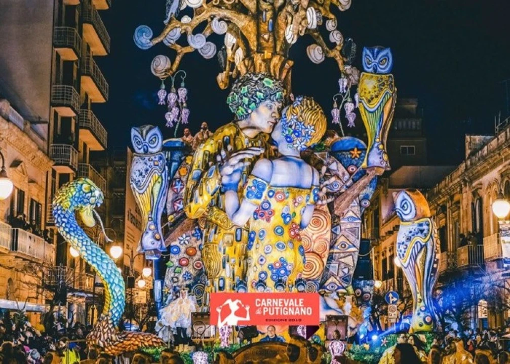 Putignano, in Apulia, is the country where the latter are not only a folklore element, but an excellence of the local handicraft that engages the whole country, all year round. The art of papier-mâché, of which wagons are made, is handed down through generations. The papier-mâché was used already in 1600 in Spain as a poor material to make the statues of the saints for the sacred processions.