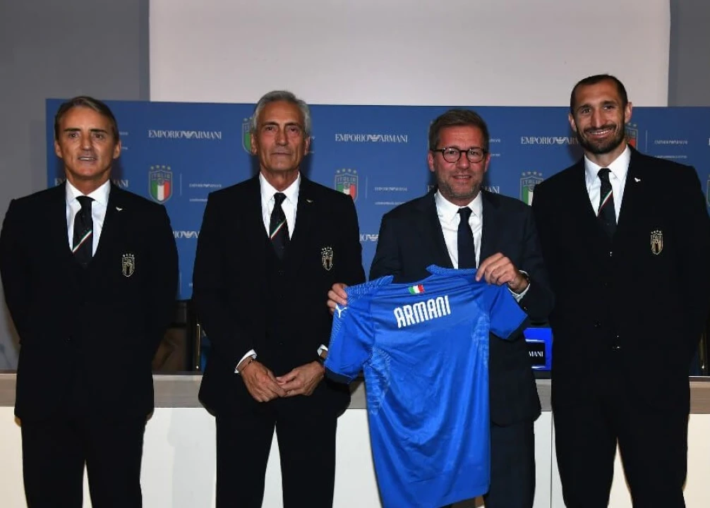 Giorgio Armani has unveiled on Monday a new partnership with the Italian Soccer Federation. In particular, the designer and the Italian sport institution have signed a four-year partnership that will see the country’s national soccer team wearing formal off-field Emporio Armani uniforms.
