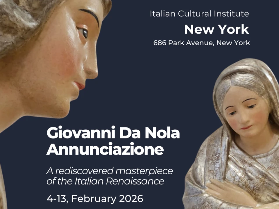 From February 4 to February 14, 2026, the Italian Cultural Institute in New York will present the exhibition “Giovanni da Nola, Annunciation. A Rediscovered Masterpiece of the Italian Renaissance.” The international cultural project celebrates the restoration and rediscovery of two extraordinary sixteenth‑century polychrome wooden sculptures depicting the Annunciation, created by the renowned Neapolitan sculptor Giovanni da Nola.