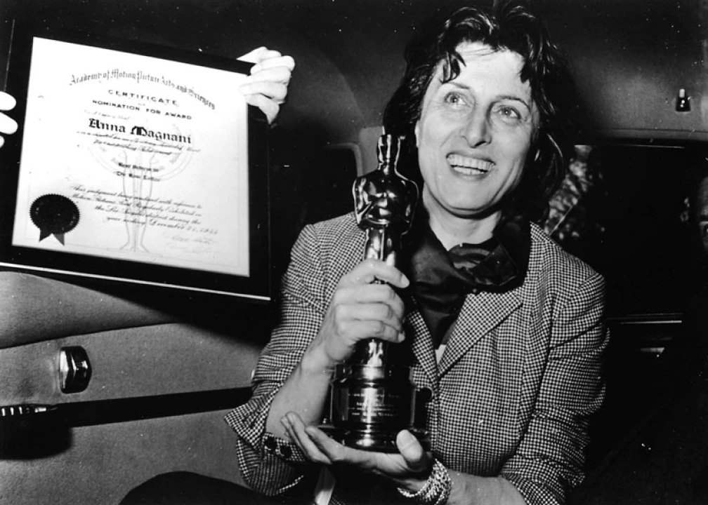 On march 21th of 1956, the roman actress was honored with the Academy Award. It was the first Oscar ever for an Italian performer. The other nominees were fantastic actresses such as Katharine Hepburn, Susan Hayward, Jennifer Jones, Eleonor Parker. But the panel of the judges was bewitched from her performance in "La Rosa Tatuata" (The Rose Tattoo): the intensity of the dramatic scenes led her, in the same year, to win also the Golden Globe.